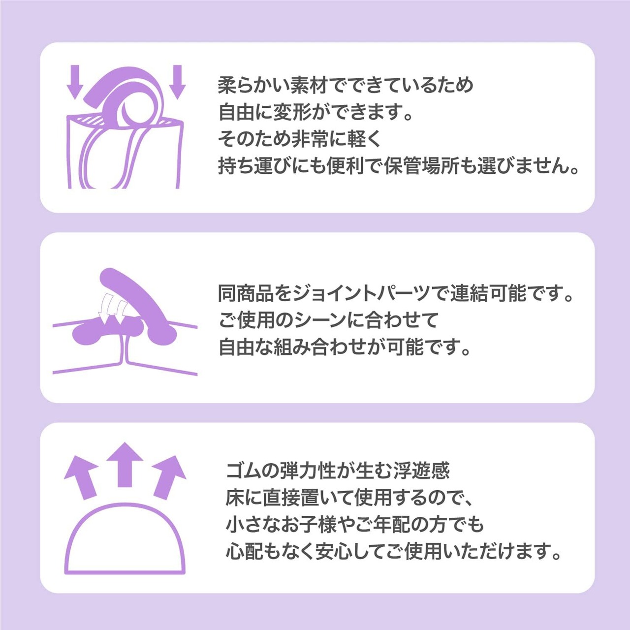 またスラックレールは壁の角などのクッション材として使われているNBRという発泡ゴムで出来ており、小さなお子様やご年配の方でも安心してご利用頂ける安全にも配慮した優しい素材を使用しています。